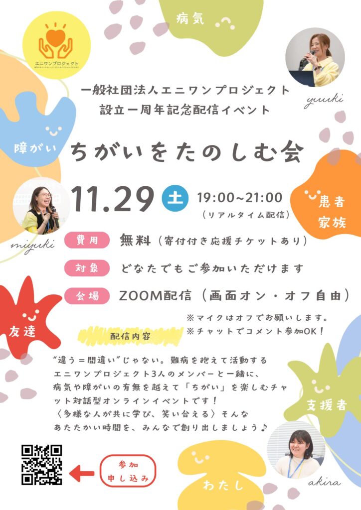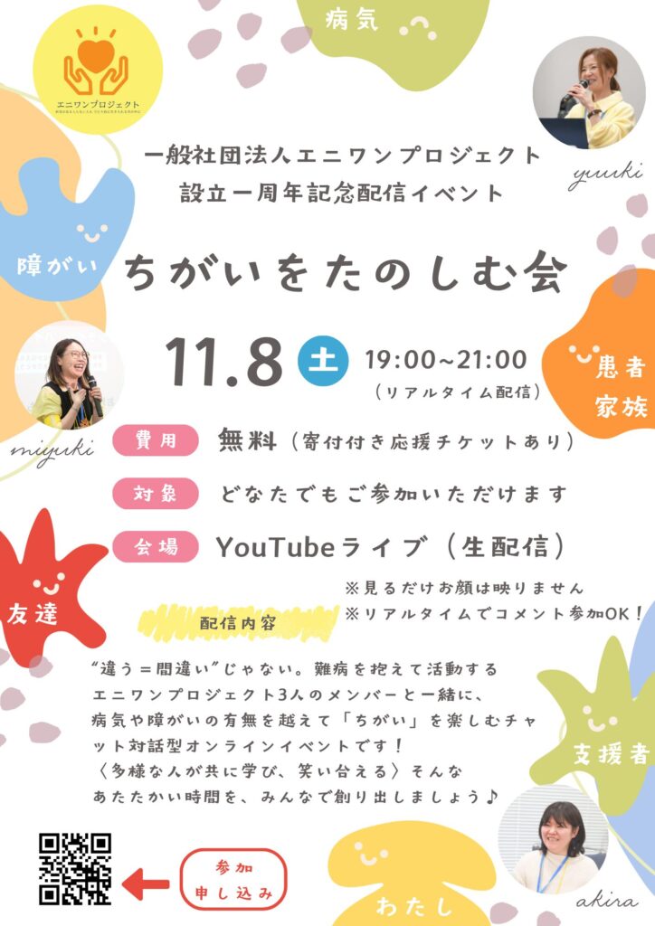エニワンプロジェクトは、設立初年度から「病気がある人もない人も、笑顔でつながる社会」を目指して活動を続けています。