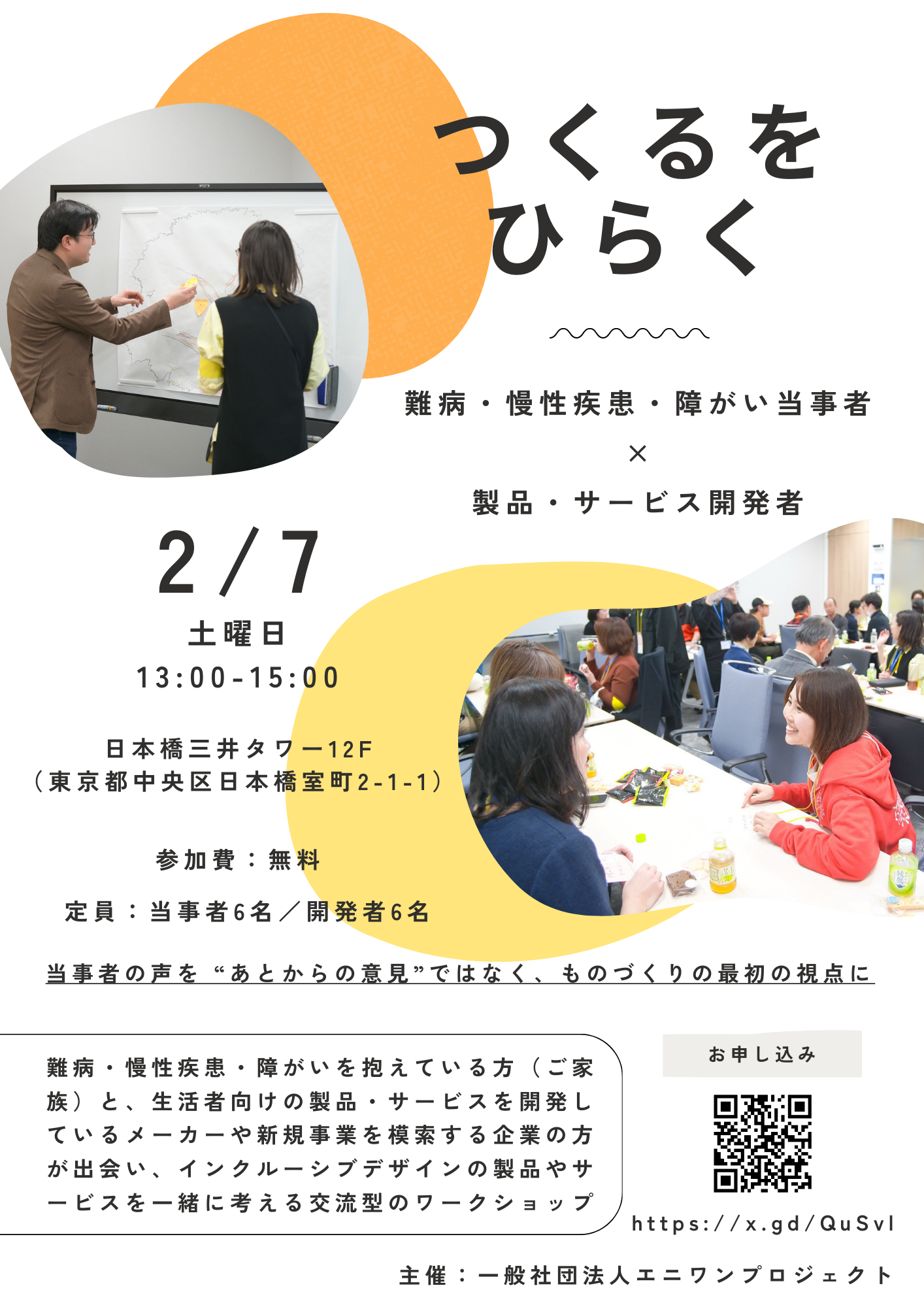 2026年2月7日(土)13:00-15:00、日本橋にて第1回【つくるをひらく】開催のお知らせをしています。